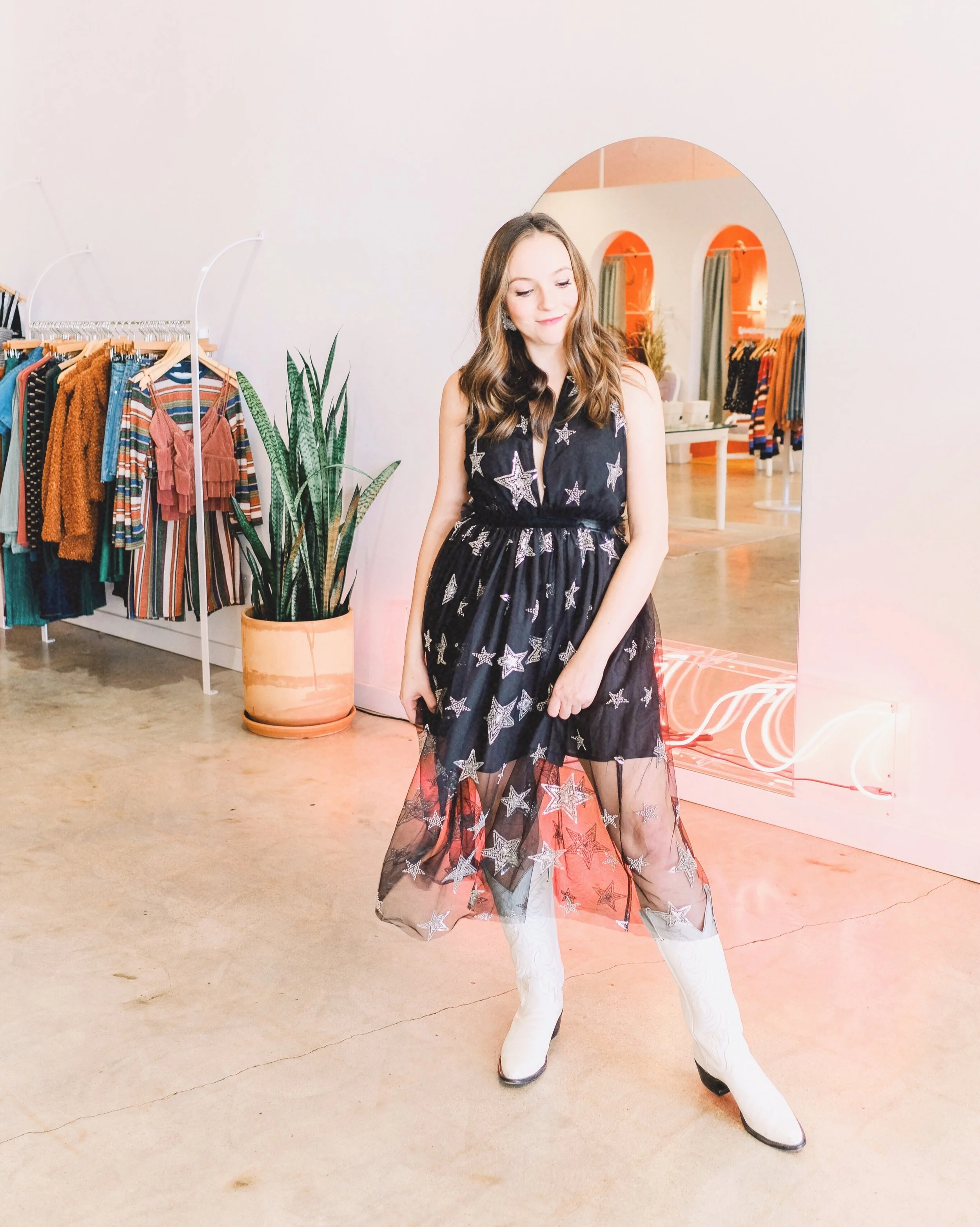 I made THE COOLEST new friend the other day, Kim from Wild Rose Vintage! She owns a beautifully curated boutique full of gorgeous vintage clothing. I had to snag this 1970's blush dress + a KISS concert tee when I saw them at her pop-up at Beehive Fort Worth. Kim spends her free time hunting for vintage treasures at estate sales, markets, and thrift stores - she even jets all the way to LA for some of her pieces. Her passion for her business is incredibly apparent when you see how clean, curated, and stylish all of the pieces in her collection are. Each item is unique and has a history all its own! Photos by the talented Adriana @lookswithadri.